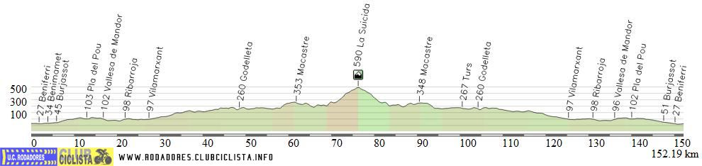 OPCIÓN A: BENICALAP - L'ANDANA (fin tramo neutralizado) - RIBARROJA - CHESTE (reagrup.) - GODELLETA - MACASTRE- LA SUICIDA - MACASTRE (Almuerzo). GODELLETA - CHESTE - VILAMARXANT - L'ANDANA (reagrupamiento) - BENICALAP.