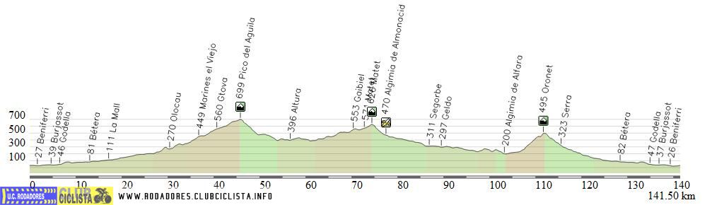 OPCIÓN A: BENICALAP - BÉTERA (fin tramo neutralizado Grupo A) - OLOCAU - PICO DEL ÁGUILA (reagrup.) - ALTURA - NAVAJAS - GAIBIEL - MATET - ALGIMIA DE ALMONACID (Almuerzo). VALL D'ALMONACID - GELDO- ORONET (reagrup.) - BÉTERA (reagrup.) -BENICALAP.
