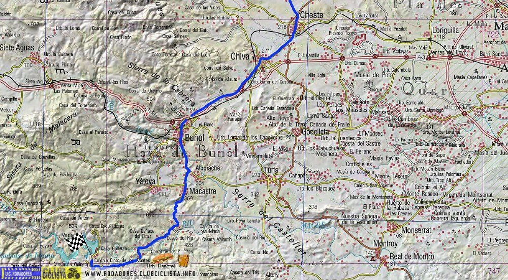 OPCIÓN A: BENICALAP - L'ANDANA (fin tramo neutralizado) - RIBARROJA - CHESTE (reagrup.) - LA FORATA - URBANIZACIÓN LLANOREL (Almuerzo). CHESTE - RIBARROJA (reagrup.) - L'ANDANA (reagrup.) - BENICALAP.