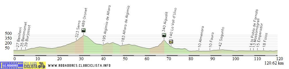 OPCIÓN A: BENICALAP - BÉTERA (fin tramo neutralizado) - SERRA - ORONET - ROTONDA TORRES TORRES (reagrup.) - ALFARA DE LA BARONIA - AIGUALIT - LA VALL D'UIXÓ (Almuerzo). SAGUNTO - PUÇOL (reagrup.) - CASES DE BÀRCENA (reagrupamiento) - BENICALAP.