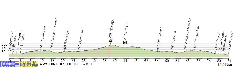 OPCIÓN B: BENICALAP - L'ANDANA (fin tramo neutralizado Grupo A) - VILAMARXANT - CHESTE (Almuerzo). RIBARROJA (reagrupamiento) - L'ANDANA (reagrupamiento) - BENICALAP. (80 km.).