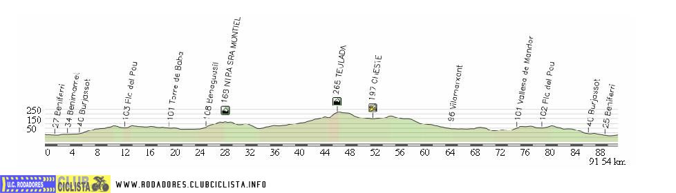 Etapa ideal para rodar agrupados y tener unos pequeños escarceos en las dos colinas. Se regresa a Benicalap por el camino tradicional.